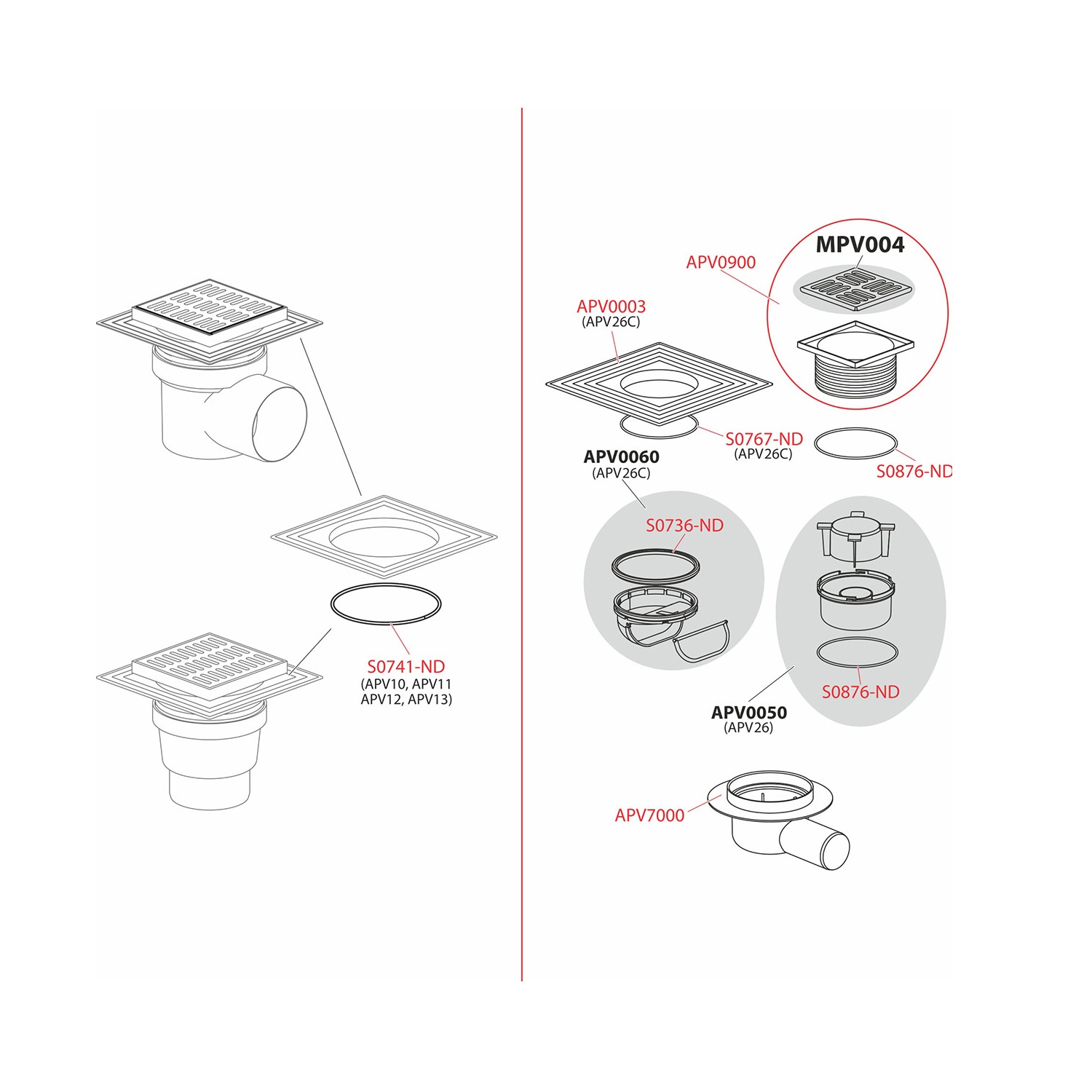 Alca Drain APV12 150x150 Chrome podni slivnik sa visinom ugradnje 173-193mm, mokrim sifonom, pokrivnom perforiranom rešetkom od nerđajućeg čelika debljine 5mm i horizontalnim odvodom Ø110mm