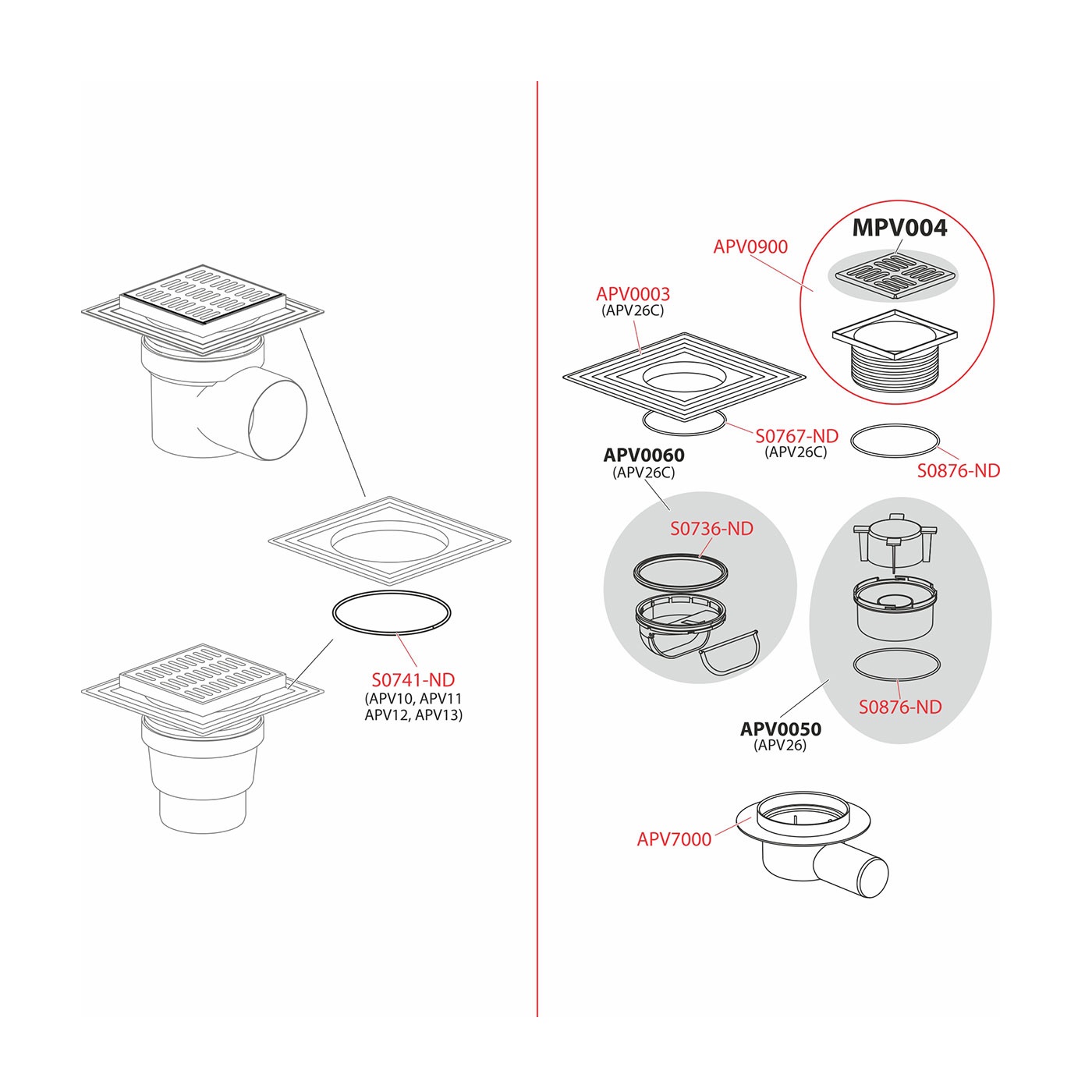 Alca Drain APV26 105x105 Chrome podni slivnik sa visinom ugradnje 77-113mm, mokrim sifonom, pokrivnom perforiranom rešetkom od nerđajućeg čelika debljine 5mm i horizontalnim odvodom Ø50mm