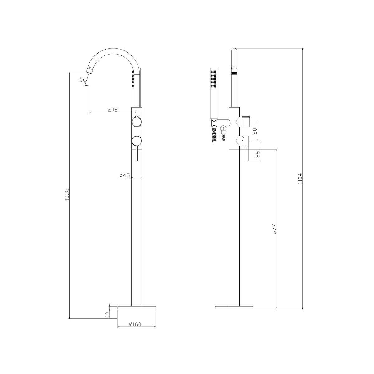 Samostojeća podna slavinu za kadu Ultima od brenda Giusta je sa svim svojim delovima u Gold Brushed završnoj obradi. Glavni deo ovog seta je baterija (slavina) za kadu sa pokretnim izlivom. Set raspolaže i sa okruglim ručnim tušem sa više funkcija. Uz ručni tuš dobija se tuš crevo, a na bateriji je integrisan fiksni držač. Sa desne strane baterije nalazi se mešač za toplu i hladnu vodu kao i kružni prebacivač za usmeravanje mešane vode sa izliva na ručni tuš i obrnuto.