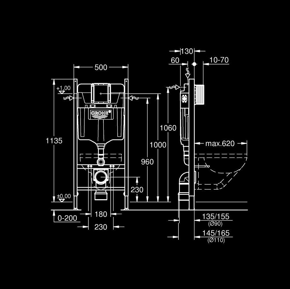 Grohe Rapid SL ugradni vodokotlić je univerzalan i za njega se može zakačiti bilo koja WC šolja te namene. Cisterna zapremine 9L izolovana je od kondenzacije. Ugradna visina iznosi 1135mm, a širina 500mm. Minimalna dubina ugradnje je 130mm.