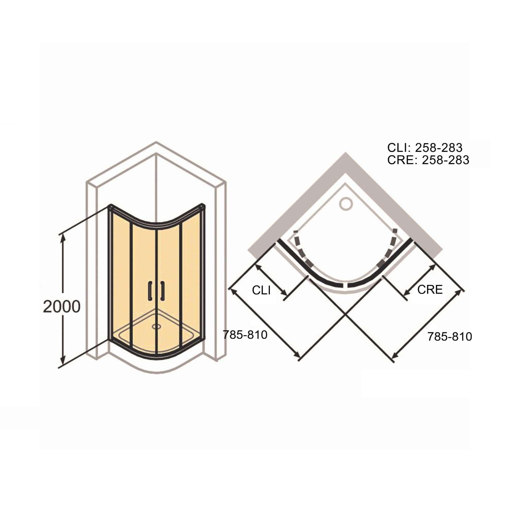 Polukružna tuš kabina Huppe Classic 2 je sa kliznim vratima na uglu i visinom od 2000mm. Postavlja se u ćošak kupatila na dva zida. Dimenzije osnove su 800x800mm, s tim što, zahvaljujući izvlačećim profilima, ugradna mera ne mora biti 800mm, već u proizvoljnom rasponu od 785 do 810mm. Ulazni otvor je 465mm, a radijus osnove 550mm, shodno čemu se pravi odabir tuš kade. Tuš kabina je napravljena od providnog kaljenog stakla debljine 6mm na vratima i 4mm na fiksnom panelu sa integrisanom posebnom Anti-Plaque tehnologijom za brzo slivanje vode što omogućava zavidnu zaštitu od kamenca. Huppe Classic 2 tuš kabine se mogu postavljati i na pločice i na tuš kade, a ovaj model ima aluminijumski profil i ručkice u Chrome završnoj obradi.