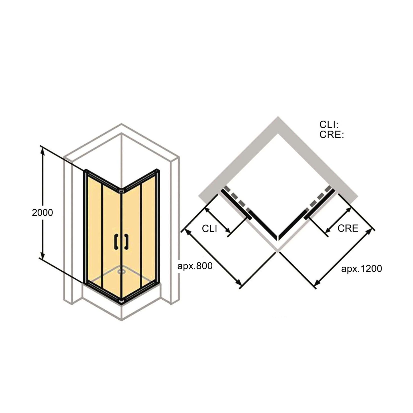 Četvrtasta tuš kabina Huppe Classic 2 je sa kliznim vratima na uglu i visinom od 2000mm. Postavlja se u ćošak kupatila na dva zida. Dimenzije osnove su 800x1200mm, s tim što, zahvaljujući izvlačećim profilima, ugradna mera nije ista kao dimenzija osnove, pa tako na primer ona nije 800mm, već u proizvoljnom rasponu od 755 do 780mm. Tuš kabina je napravljena od providnog kaljenog stakla debljine 6mm na vratima i 4mm na fiksnom panelu sa integrisanom posebnom Anti-Plaque tehnologijom za brzo slivanje vode što omogućava zavidnu zaštitu od kamenca. Huppe Classic 2 tuš kabine se mogu postavljati i na pločice i na tuš kade, a ovaj model ima aluminijumski profil i ručkice u Chrome završnoj obradi.