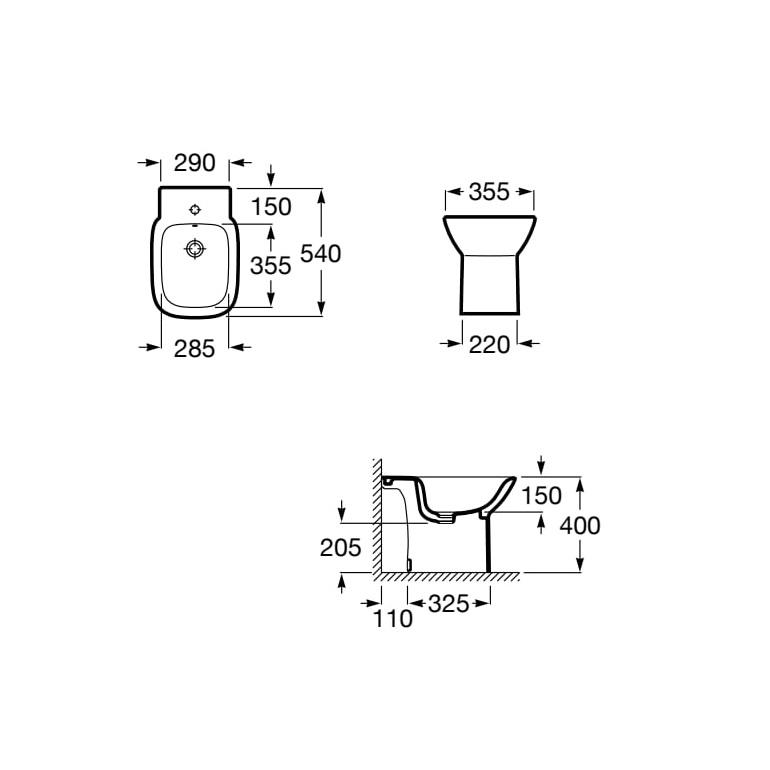 Roca Debba White bide postavlja se na pod i dolazi u beloj boji. Na sebi ima rupu za bateriju (slavinu) koja je simetrično pozicionirana na sredini bidea. Bide ima preliv kroz koji voda otiče kada je glavni odvod zatvoren.