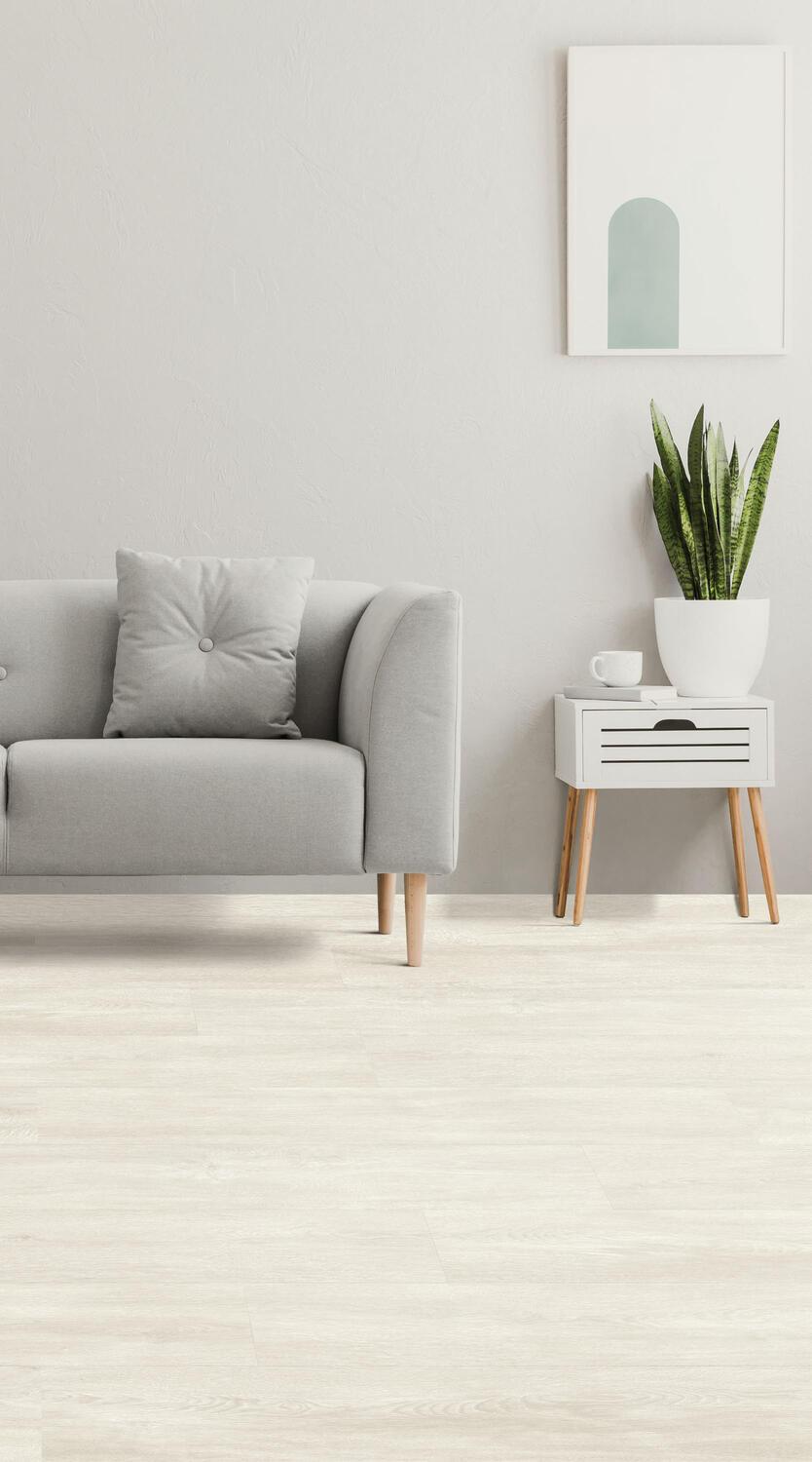 LVT podna obloga od brenda Tarkett iz kolekcije ModularT 7 je inovativan proizvod na bazi heterogenog polivinil hlorida sa pločom sa duboko oborenim ivicama. Dimenzija ploče je 20x120cm, a debljina gornjeg sloja 0,7mm i na njoj dominira dezen Oak Elegant White. Karakterističan način ugradnje je lepljenje, a ovaj LVT pod je prevashodno pogodan za komercijalne prostore zbog izdržljivosti i trajnosti. Prednost odabira ovog materijala je vodootpornost i dvostruko veće smanjenje buke u prostoru nego kod standardnih LVT obloga, a takođe materijal je potpuno reciklabilan.